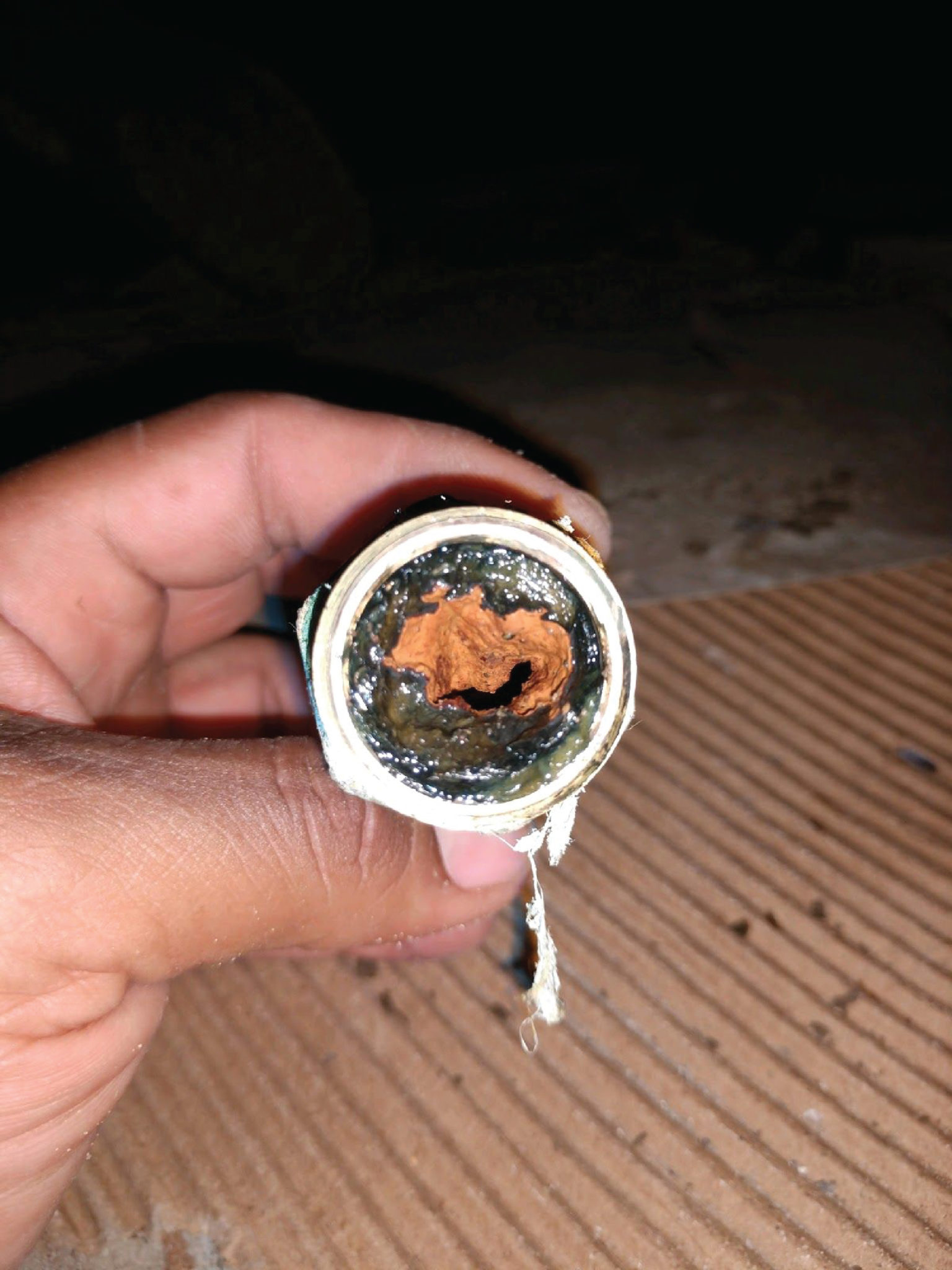 With galvanized piping, the more common issue is corrosion. This happens over time and is due to the water quality and the quality of the galvanized pipe. The galvanized pipe manufactured after 1972 mostly came from overseas and the quality was very inconsistent. Galvanized pipe will develop internal rust and major build-up over time and can cause pin holes or pits in the pipe. If your home or business has galvanized pipes and you have poor water pressure, often the cause is simply due to a restricted pipe from rust build-up. If you notice discolored water coming from the fixtures regularly, a potential emergency may be coming. This happens because parts of the rust are breaking off inside the pipe and ending up in the fixture. This breaking off of rust from the inside of a pipe can allow for pitting that has occured within the pipe to be exposed and leak water. We have seen this in extreme cases where the pipe becomes so corroded that it is disintegrating. It is recommended to replace these pipes with a newer material like copper or PEX that will not corrode or become restricted over time. It is a good idea to visually inspect the pipes every now and then for signs of corrosion. You may not be able to see any corrosion on the outside but if you do, that is a sure sign that there is much more corrosion on the inside and action should be taken to replace it before an issue arises. An interesting thing can happen with galvanized pipe specifically. It can somewhat heal itself if a pinhole leak occurs.