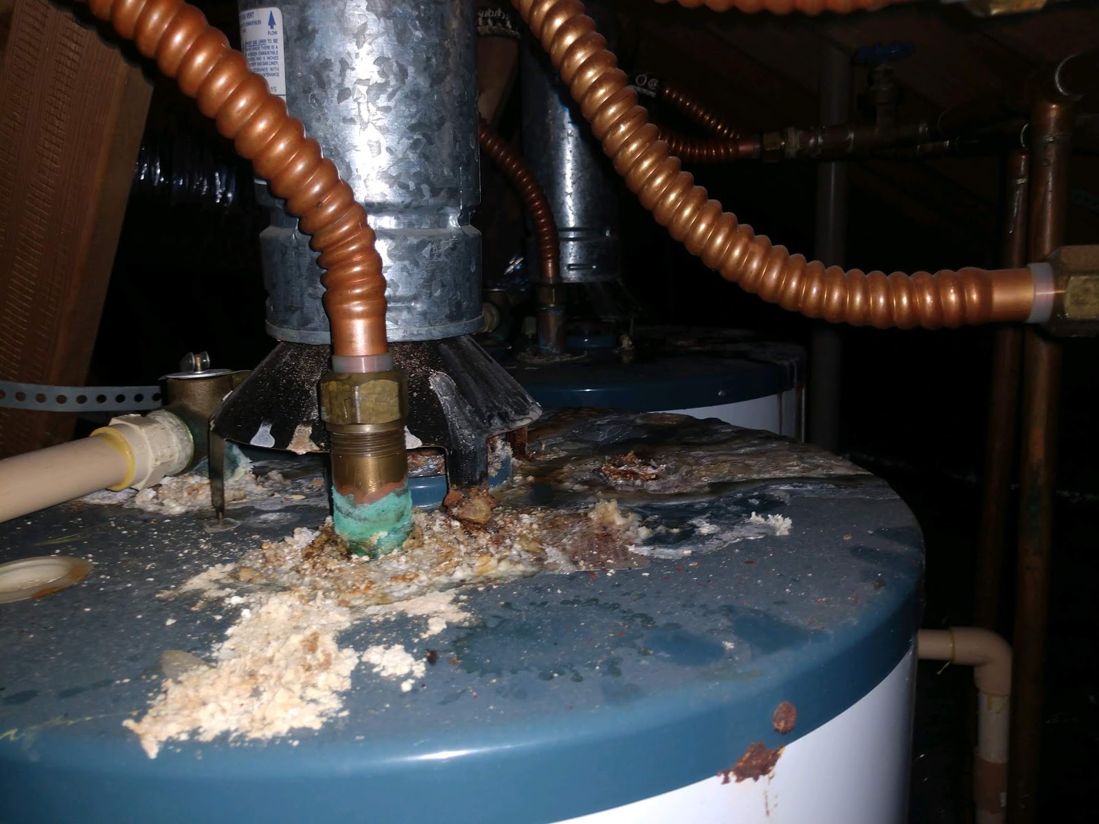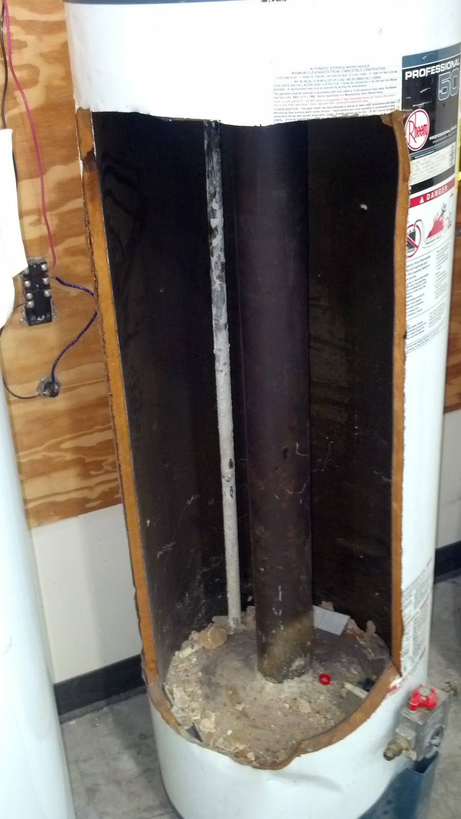 Two tankless water heaters installed outside recessed in boxes for a restaurant. This photo was taken while we were descaling them.ImageAnother water heater with a lot of corrosion that was located in an attic. This water heater had been leaking for a long time but due to it being located inside an attic, it went unnoticed.Image