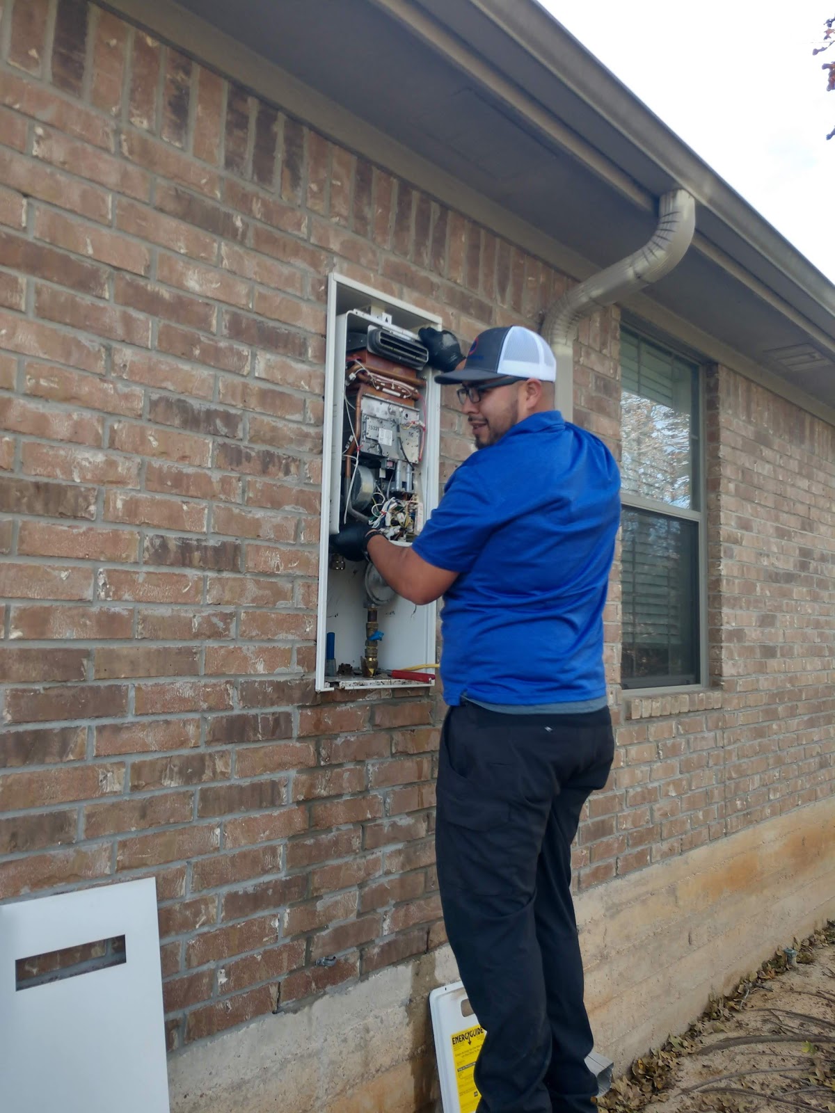 There are many benefits to having a tank style water heater so let’s look at a few. One benefit of a tank style is they are simple and require very little maintenance. The main type of maintenance for a tank water heater is to flush it at least once a year. This helps to keep from mineral deposits building up and causing the tank to lose efficiency. That, along with replacing the temperature and pressure relief valve every couple years, is all the maintenance generally needed for a tank type water heater, save for occasional visual inspections to see if leaks or corrosion are present. On average, most tanks last about 8-12 years before needing replacement, depending on water quality and a few other factors. Another benefit of having a tank type is replacement parts are typically inexpensive and readily available. Most of the time they work without issue for many years and are fairly inexpensive to maintain. If there is a power outage with an atmospherically-vented gas tank water heater (the most common in this part of Texas), you will not lose hot water as opposed to a gas tankless water heater which does require a small amount of electricity in order to function. The cost to replace a tank style is also less than converting to tankless or replacing an existing tankless. Suffice it to say, a storage tank style is simple.