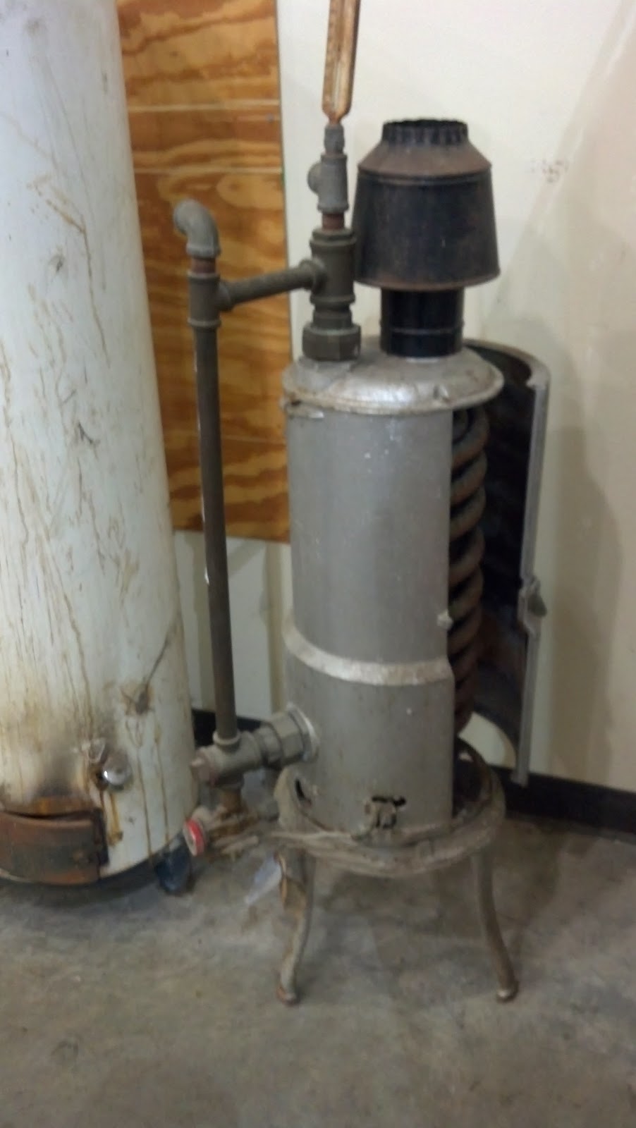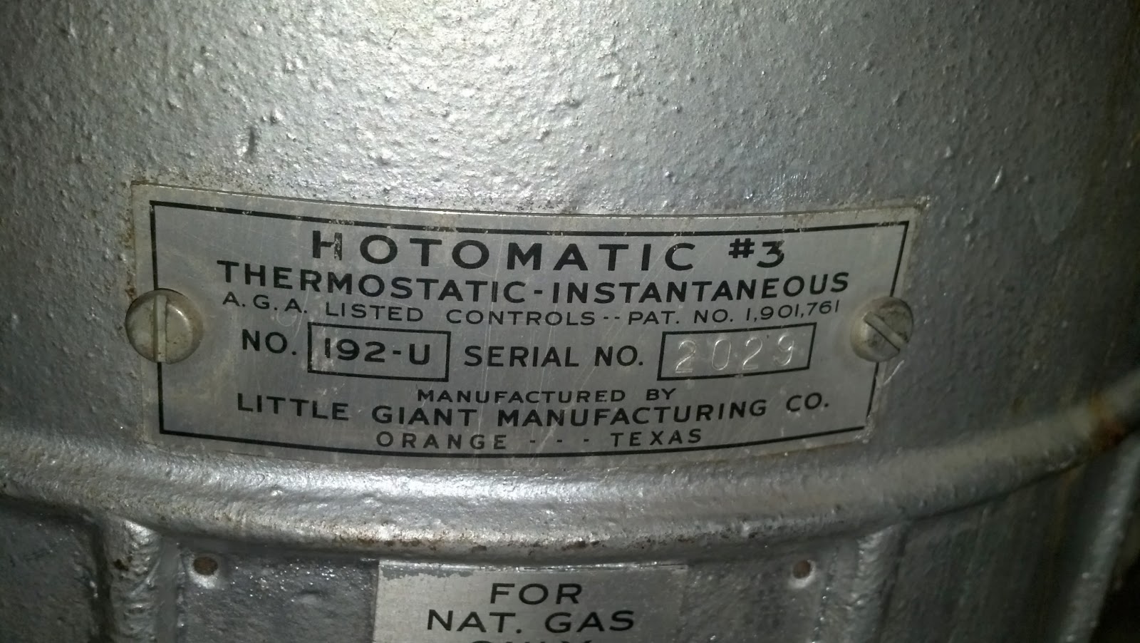The model and serial number for that old tankless water heater.ImageA gas water heater with the front cut out to expose the insulation and what the inside looks like. The yellow stuff on the walls is the insulation around the tank enclosed within the jacket.